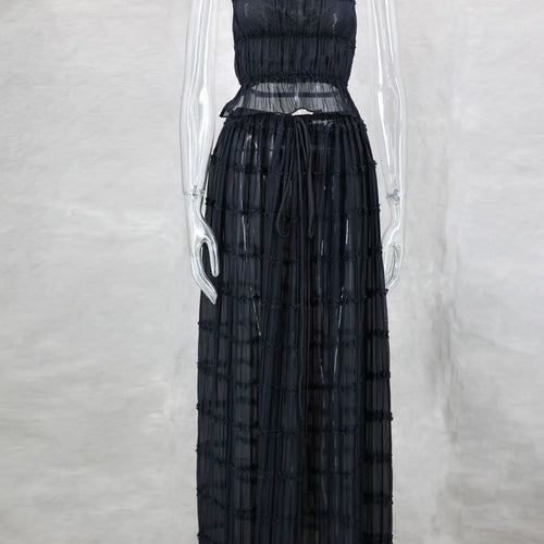 Backless Ruched Beach Set – Halter Top & Long Skirt Two-Piece Outfit